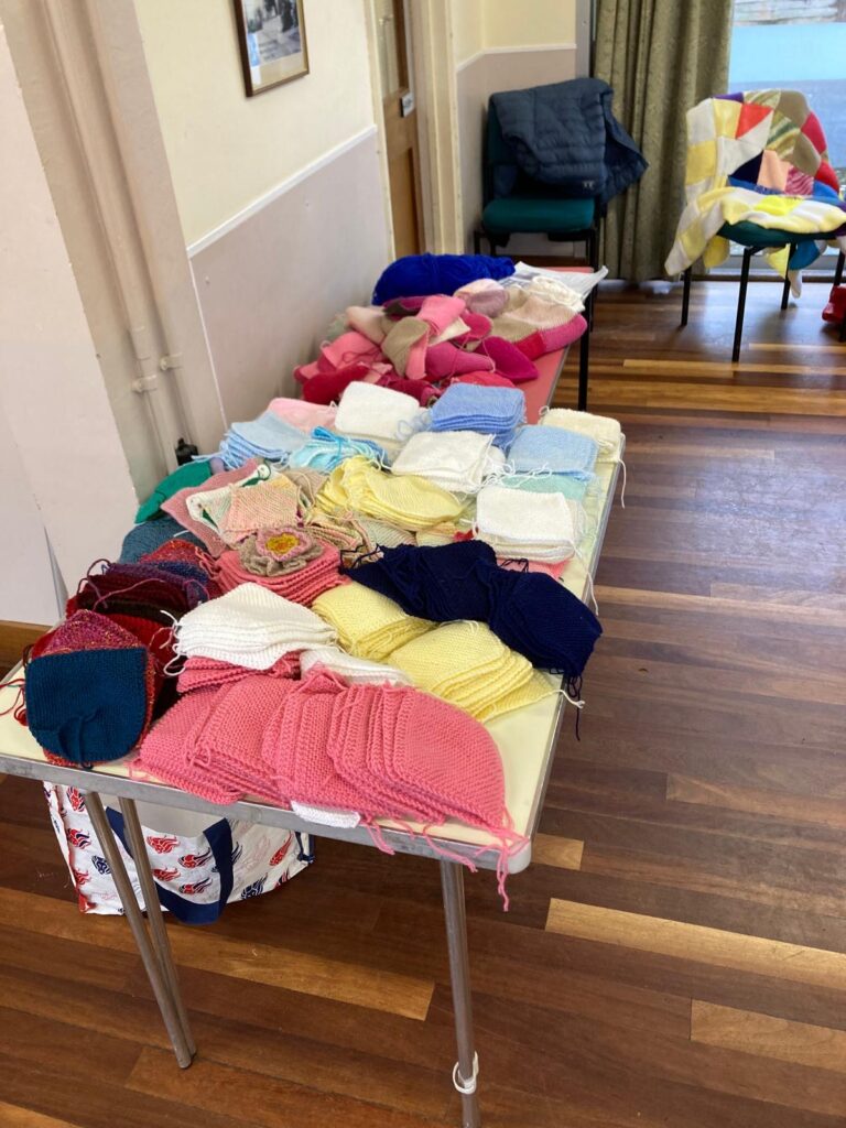 A huge thank you to everyone and anyone who has knitted a square, hat , scarf or put a blanket together- over 1,720 squares have passed through our coffee morning . Knit for peace is a charity and the items go to Taunton Action for Refugees.