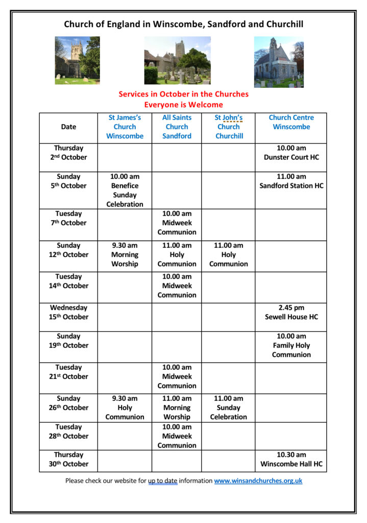 The services will be informal and led by a variety of people including the clergy and several of our newly trained Lay Worship Assistants. We hope they will be topical and offer something for everyone.